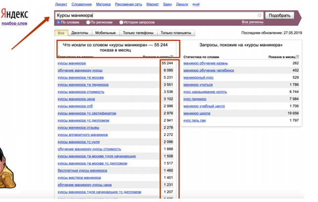 Запрос «курсы маникюра» задавали 55 тыс. человек.