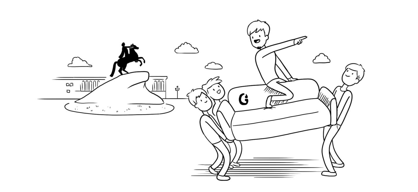 В тот день наша учеба как раз была на выезде, на Васильевском острове, и до «Медного всадника» было не более двадцати пяти минут пешком. Значит, у нас оставалось тридцать пять минут на поиск еще десяти грузчиков. Как ни удивительно, но проблемой это не стало. Желающих улизнуть с пар, имея «уважительную» причину, было предостаточно, и мы дружной толпой отправились перетаскивать мебель.