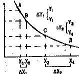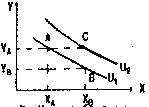 Потребитель, находясь в точке A готов уступить Y0 – Y1 блага Y взамен приращения блага X на X0X1. Однако, располагая набором C, он за равновеликое приращение блага X согласится уступить Y3 – Y2 блага Y, что меньше Y0Y1.