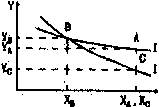 Набор С содержит такое же количество товара Y, что и набор А, но большее количество товара X. Из аксиомы о ненасыщении следует, что С > А. Все наборы, лежащие на кривой безразличия II для потребителя равноценны. Из аксиомы о транзитивности следует, что любой набор, лежащий на кривой II, для потребителя предпочтительнее любого набора, лежащего на кривой I.