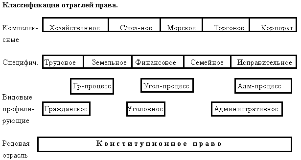 Отрасль права – совокупность норм, регулирующих комплекс однородных отношений со специфическим режимом регулирования, как правило с обособленными кодифицированными законодательными актами.