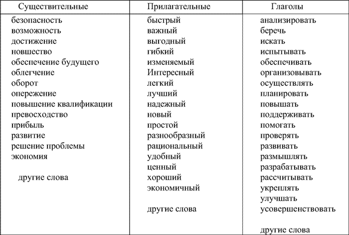 Правило 6. Употреблять слова, которые помогут пробудить интерес. Обращать внимание па полезность встречи (разговора), а не полезность услуги (продукта). Употреблять существительные, прилагательные и глаголы, отражающие положительные качества. Некоторые из них приведены в таблице 10.2.