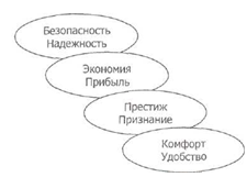 У каждого человека есть определенные потребности, и он стремится удовлетворить их. В практике продаж целесообразно сосредоточиться на четырех основных группах потребностей, оказывающих доминирующее влияние на принятие решения о покупке.