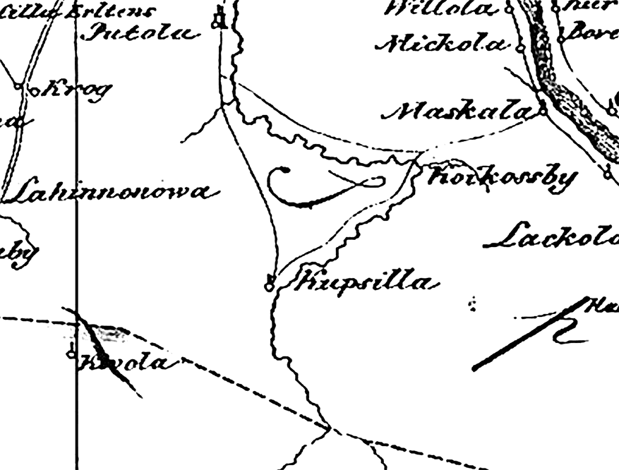 С конца XVII века деревня обозначается на шведских картах как Kupsilla. Самой известной картой с указанием именно этого варианта названия деревни, несомненно, является карта А. И. Бергенгейма.
