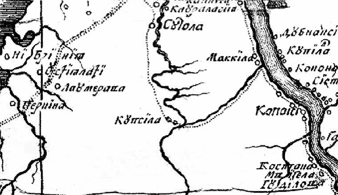 В действительности на упоминаемой карте обозначено поселение с названием «Kypsilla» и ничего более.