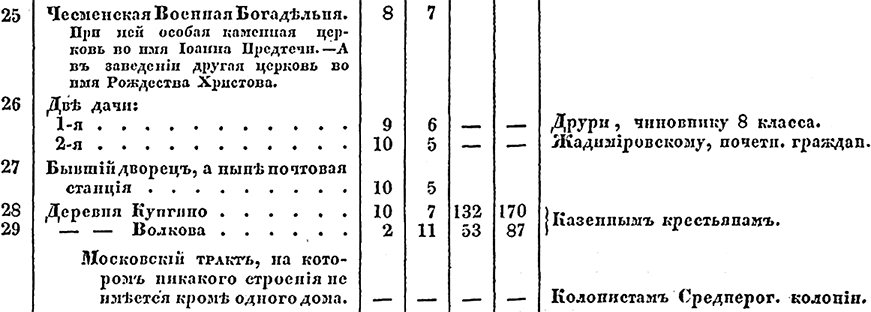 Фрагмент списка населенных мест по сведениям 1856 г.