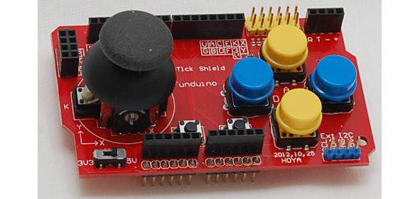 Управление космическим кораблем будет происходить с помощью специального пульта управления, состоящего из плат Arduino и Joystick Shield, подключенных к компьютеру через USB.