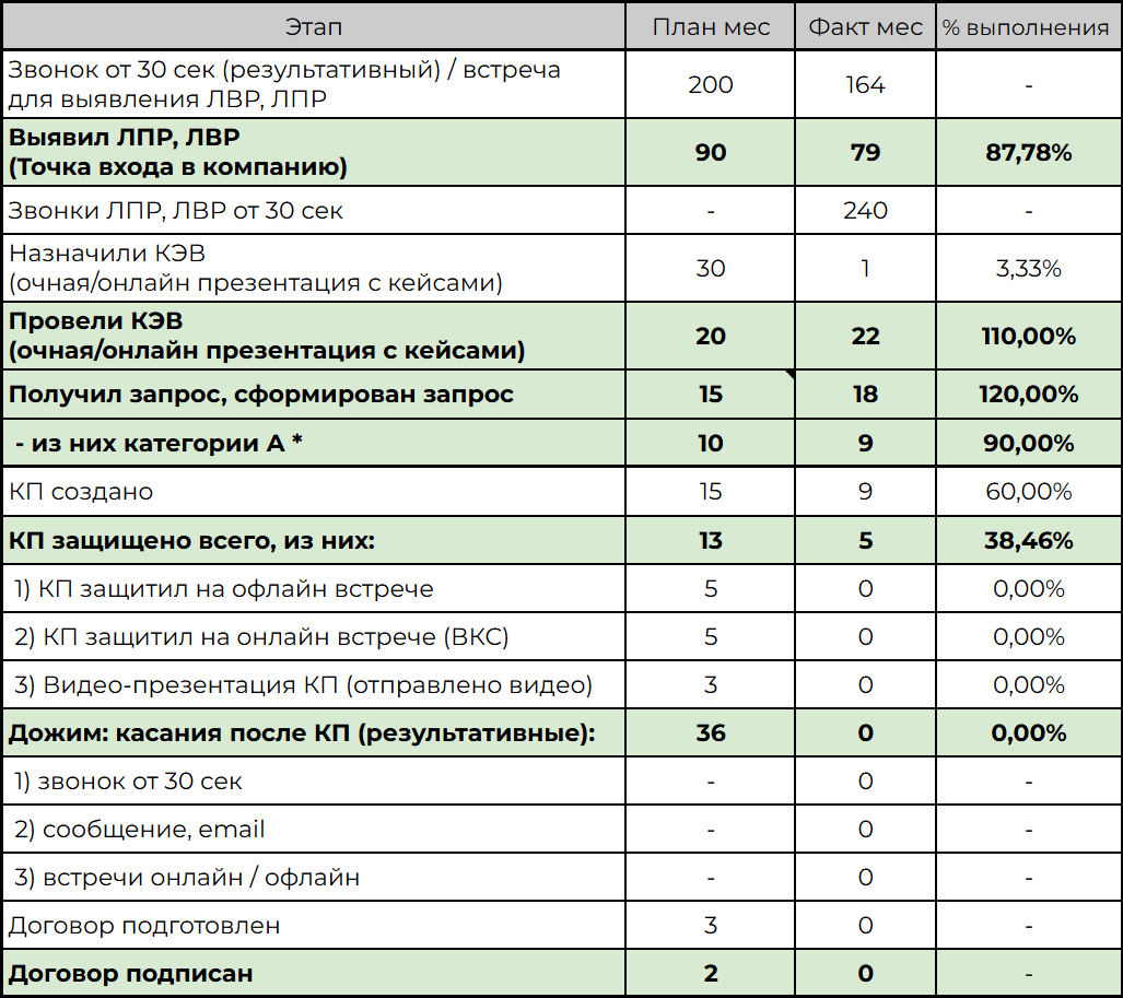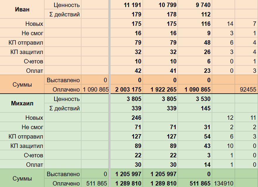 Главная ошибка: отчетность начинает заполнять сам предприниматель или руководитель отдела продаж. Это не ваша обязанность. У каждого менеджера есть свои строки в отчете, куда они вносят данные каждый день, а показатели отдела будут сводиться автоматически. Это работа займет не больше 5 минут в день.