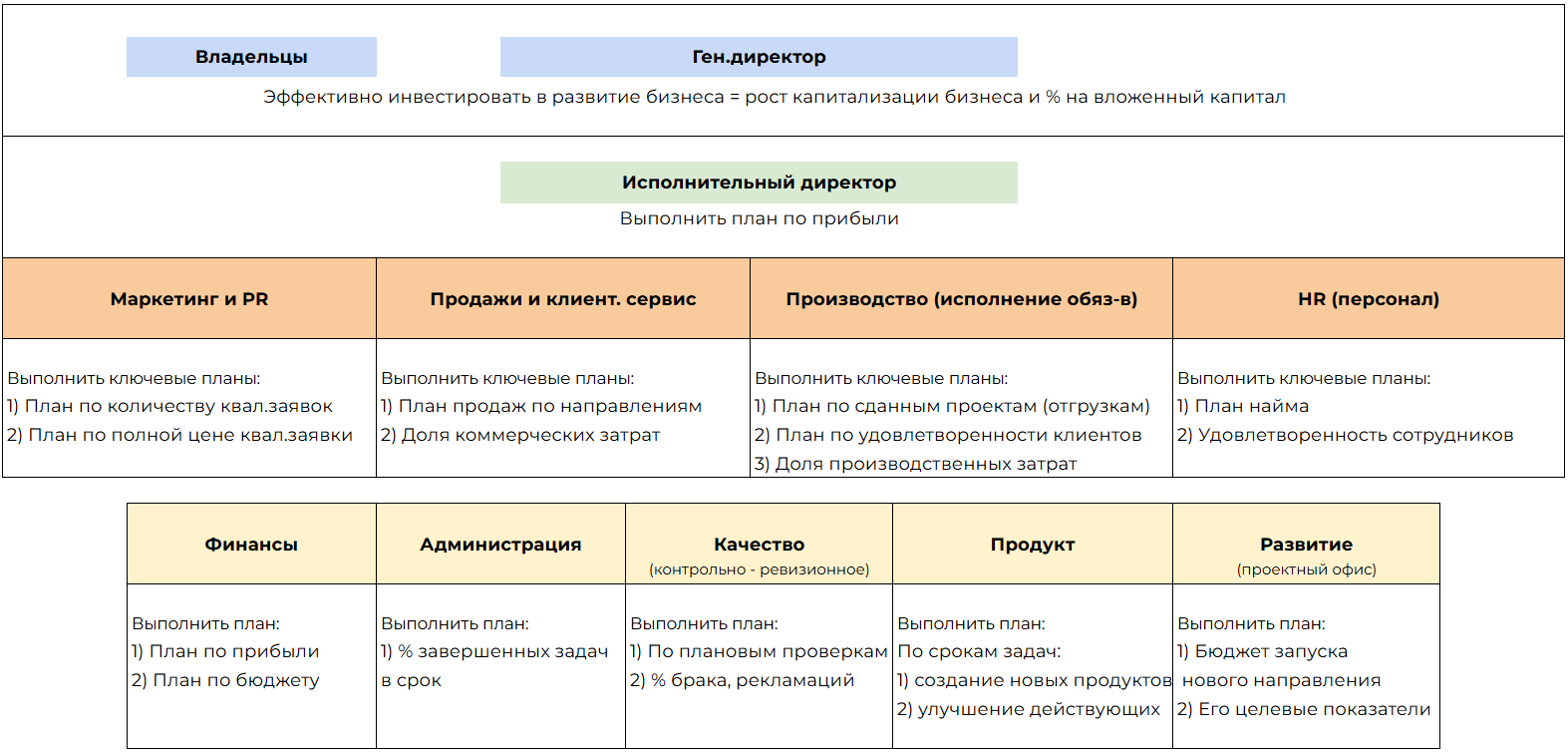 А если планы подразделения опять не выполняются, конверсия по этапам воронки падает, у клиентов низкая удовлетворенность качеством, и процент брака растет? Что нужно делать? Вносить изменения в работу подразделения.