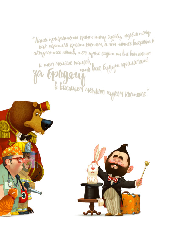 Если в вас помимо иллюстратора ещё где-то в глубине живёт и маленький лохматый философ, то, возможно, вам будет проще воспринимать всё написанное ниже как список жизненных и профессиональных приоритетов. Вся наша жизнь – это попытка следования заложенным в нас в детстве приоритетам и их коррекция согласно изменившимся обстоятельствам. Наши приоритеты кроят нашу судьбу, подобно тому, как портной кроит костюм, и чем точнее выкройка и аккуратнее пошив, тем лучше сидит на вас ваш костюм и тем меньше шансов, что вас будут принимать за бродягу в висящем мешком чужом костюме.