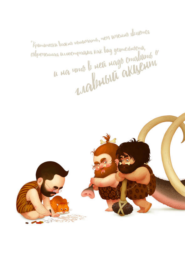 И однажды я подумал, а не записать ли мне все свои лекции и упорядочить их так, чтобы они представляли собой единый информационный блок, удобный для восприятия и изучения людям разного уровня подготовки и информированности. Это был первый импульс для написания книги. Но была ещё одна причина, не менее существенная, чем моя драгоценная лень. А дело в том, что мне не только несколько лет подряд приходилось отвечать на одни и те же вопросы, но и сами эти вопросы были одного уровня понимания проблемы. Точнее, одного уровня непонимания. Я не мог не заметить, что молодые и не очень молодые люди, пришедшие ко мне на лекции и жаждущие бесценных знаний с целью стать хорошими иллюстраторами, попросту не понимают, что такое иллюстрация. Они имеют очень размытое представление о том, чем занимается иллюстратор и какие требования предъявляются к нему рынком вообще и клиентами в частности. Эти молодые иллюстраторы обычно задают очень технические вопросы, касающиеся программного обеспечения или ценообразования, вроде того как продвигать себя и как находить клиентов. И хоть вопросы эти важны на определённом этапе карьеры, начинать следует не с них, а с вещей более базовых и принципиальных. Возможно, даже с философских. Критически важно понимать, чем именно является современная иллюстрация как вид деятельности и на что в ней надо ставить главный акцент. Создаётся впечатление, что молодым иллюстраторам уже всё давно известно и единственное, что им нужно, это пара технических хитростей в работе с их любимой программой рисования, а дальше они уже сами полетят, как на крыльях.