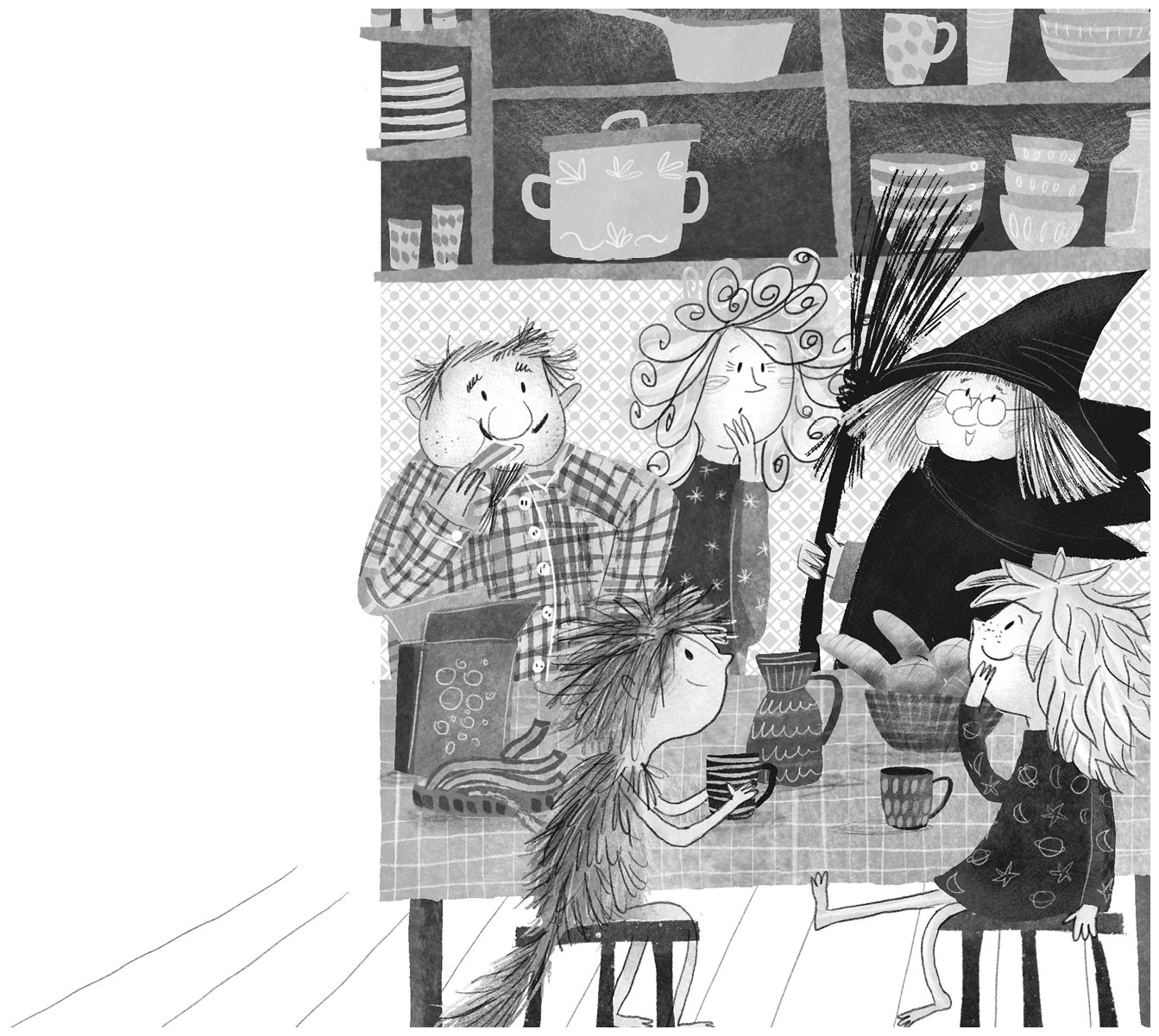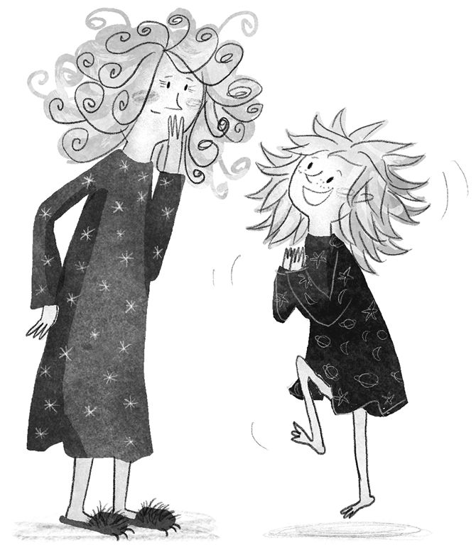 Вскоре в дверях кухни появилась Айви. На ней была смешная пижама, а её светлые волосы торчали во все стороны. За девочкой следовал худой серый волк. Как и у всех волшебниц и волшебников в Миракуле, у Айви был магический спутник, которого называли фамильяром. Айви и волчонок Том были неразлучны.