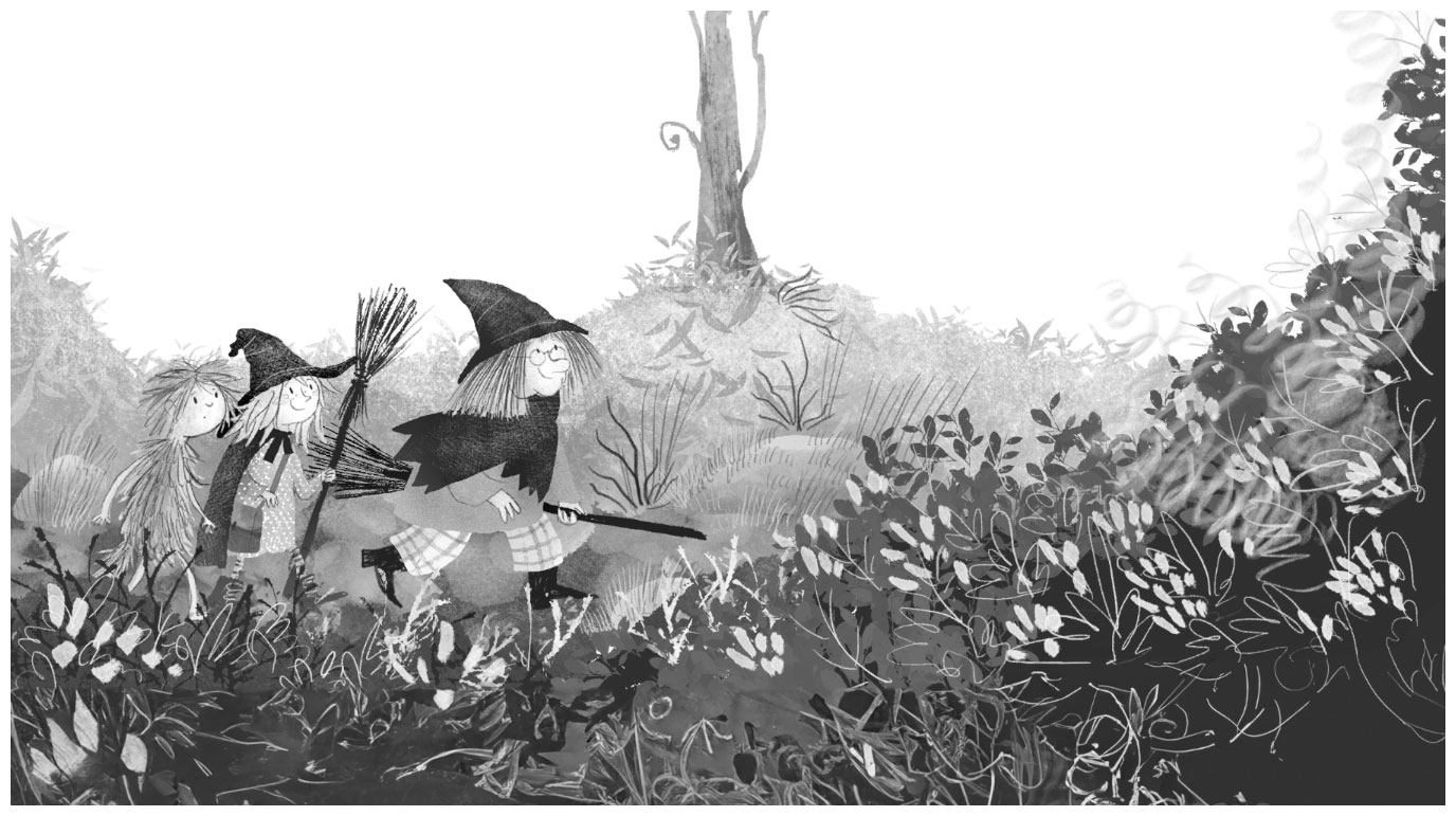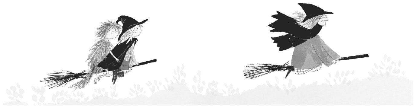 Айви с Томом сели на метлу и вылетели в окно следом за бабушкой.