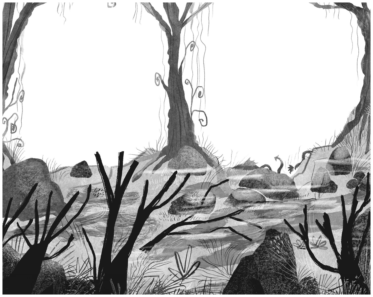 Совсем скоро компания достигла другого берега озера Жути, где пейзаж сменился на ровные болотистые земли. Повсюду были мутные пруды и озёра, окружённые высоким тростником, скалистые холмы и трясины. Айви ахнула, указывая рукой: