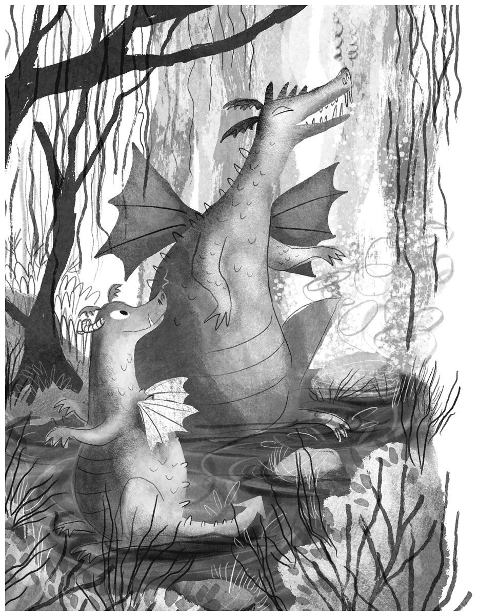 – Нет-нет, вспомни, что я тебе говорила раньше, – болотные драконы ручные, – твёрдо сказала бабушка. – И ты прав, что это «он», Том. Я вижу по отметинам, что перед нами молодой самец. Он может показаться большим и грозным, но в действительности безобиден: тот дым, что мы видели, это всё, на что он сейчас способен. Извергать огонь дракон сможет, только когда станет полностью взрослым. Так что нам совершенно ничего не угрожает.