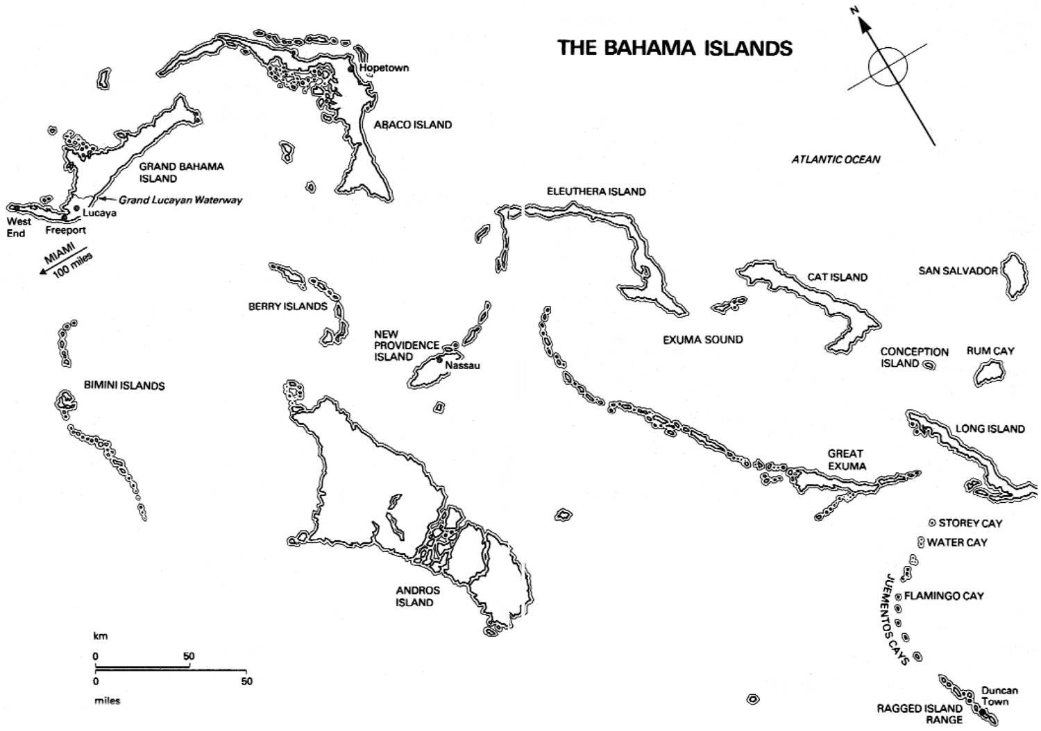 My name is Tom Mangan and I am a Bahamian – a white Bahamian. This caused some comment when I was up at Cambridge; it is surprising how ill-informed even supposedly educated people can be about my home islands. I was told that I could not be a Bahamian because Bahamians are black; that the Bahamas are in the Caribbean, which they are not; and many confused the Bahamas with Bermuda or even Barbados. For these reasons and because an understanding of the geographical and political nature of the Bahamas is essential to my story it seems to me that I must describe them and also give a brief account of my family involvement.