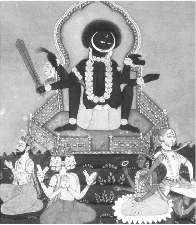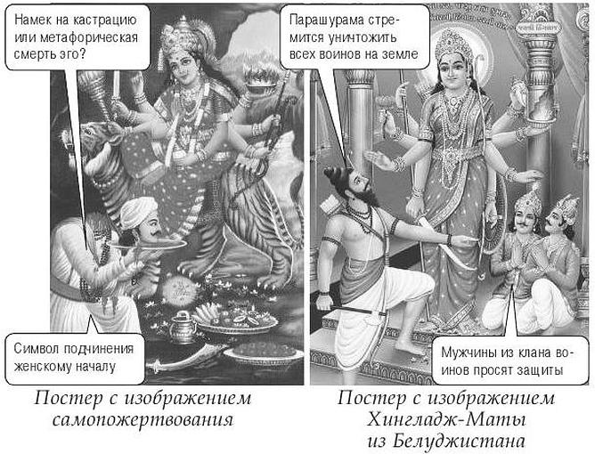 Некоторые исследователи считают, что мужские головы на шее Кали – это головы мужчин, убитых после того, как они подарили ребенка племенной богине: показатель цены за мужской вожделеющий взгляд. В «Вайшно-дэви» Богиня есть девственница, которая убивает Бхайраву за сексуальные домогательства, но, обезглавив его, просит своих почитателей поклоняться также и ему. Мы можем лишь гадать, можно ли считать это древней формой отказа или подчинением мужскому сексуальному взгляду.