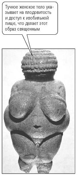 Тот факт, что для выживания племя нуждалось в первую очередь в женщинах, а не в мужчинах, проявляется в искусстве каменного века, где мы находим одержимость пышными, плодовитыми женскими формами, изображениями украшенных драгоценными камнями женщин с обнаженными гениталиями. Мужчин же в ту эпоху изображали в виде одного лишь фаллоса или поклонялись им в форме альфа-быка, барана или козла.