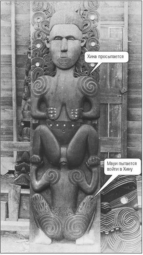 Подобным образом в полинезийской мифологии Мауи пытается добыть для человечества бессмертие, проникнув в вагину Хине, богини смерти и подземного мира, пройдя сквозь ее тело и выйдя через рот. Но как только он входит, она просыпается и, догадавшись, что задумал Мауи, кусает его зубами, окаймляющими ее половые губы. Даже в греческой мифологии человечество зависит от милости богинь судьбы Мойр, прядущих нить, которая определяет длину и качество жизни каждого человека.