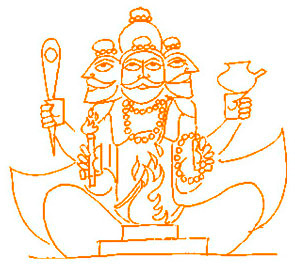 Бог-создатель выглядит как жрец, распевающий ведийские гимны[3] и держащий в четырех руках ритуальные инструменты. Каждый ритуал завершается напевом «Шанти, шанти, шанти», что значит «успокоение, успокоение, успокоение». Успокоение, спокойствие – это конечная цель каждого ритуала. Оно приходит, когда адепт в согласии с тремя мирами: собственным, культурным и национальным[4]. Для этого он должен воспринять мир в его целостности, увидеть со всех точек зрения. Это делает Брахма, чьи четыре головы смотрят по четырем сторонам света.