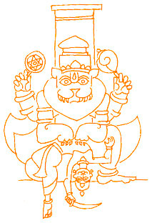 Нарасимха[13] – воплощение Вишну, которое не является ни человеком, ни животным. Для многих он чудовище, поскольку не поддается классификации. Для верующих он Бог, поскольку находится вне классификаций. Изображения, подобные этому, превосходящие границы человеческого видения и восприятия, украшают стены индуистских храмов. Они служат всеобщим напоминанием о том, что невозможное в человеческом понимании может воплотиться в божественной мысли.
