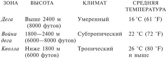 Абиссинцы имеют свои собственные названия для трех основных климатических зон, которые могут быть приблизительно определены так: