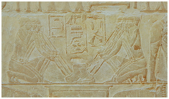 Подражать находчивому скарабею-созидателю, превращающему природный материал в сложные формы, стремились и художники. Уже в эпоху Среднего царства (2050–1652 годы до н. э.) в Египте процветали прикладные искусства, а мастера активно применяли сложные методы очистки золота, серебра и меди, умели изготавливать искусственные драгоценные камни, стекло, а также разнообразные краски и пигменты, удовлетворяя тем самым спрос на модные ювелирные украшения, косметику, изящную архитектуру, картины и текстиль.