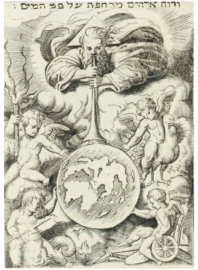 Бог в образе стеклодува при помощи четырех стихий создает земной шар и наполняет его духом – пневмой