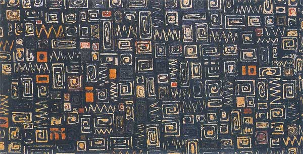 Пример Женщин де Кунинга подтверждает недавний вывод историка искусства Энн Гибсон, согласно которому героическая позиция художников нью-йоркской школы универсализирует одну идентичность – гетеросексуального белого мужчины – за счет всех остальных. И здесь дает о себе знать важный парадокс, которым, как станет ясно из следующей подглавки, пронизан и интерес абстрактных экспрессионистов к искусству индейцев. Как явствует из предпринятой Гарольдом Розенбергом проекции публичного измерения на приватный акт живописи, ключевую роль в самоопределении американской абстракции середины XX века играла индивидуальность, отображающая универсальный набор человеческих ценностей и эмоций. Чтобы выработать такую универсальную индивидуальность, художникам нью-йоркской школы, как утверждает Гибсон, потребовалось включить в свою единую трансцендентную идентичность все прочие идентичности. Если следовать грубой метафоре Гайста, живопись могла пониматься как форма сексуального контакта, совершаемого по отношению к женщине-холсту мужчиной-художником, то есть женственность оказывалась им изображенной и присвоенной – покоренной и трансформированной. В такой ситуации другие художники из круга абстрактных экспрессионистов – женщины и небелые мужчины – попадали, согласно Гибсон и Энн Вагнер, в сложное, если не безвыходное положение. Так, говоря о художнице Ли Краснер (1908–1984), жене Поллока, Вагнер отмечает, что те качества, которые ценились в искусстве Поллока – открытость эмоциям и флирт с хаосом, – осуждались как слишком женственные или даже истеричные, когда дело касалось искусства женщины. С этой точки зрения напоминающие плетенку иероглифические картины Краснер, написанные в 1949 году (илл. 8) и превосходно синтезирующие живописный жест с алфавитной формой, незаслуженно зачислялись в разряд второстепенных реплик свободной жестуальности ее мужа. Как и многим другим художникам, работавшим на периферии нью-йоркской школы, Краснер отказывали в универсальных гуманистических ценностях, приписываемых Поллоку и де Кунингу, оценивая ее искусство в свете особой – в данном случае женской – идентичности.