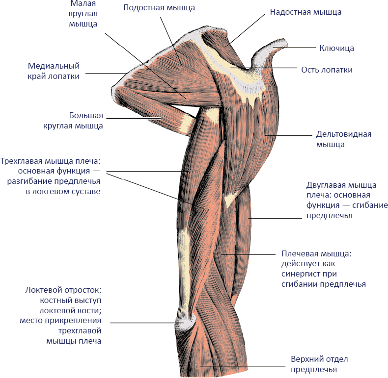 В верхних конечностях ситуация иная, потому что если вы не делаете что-то необычное, например не идете на руках со слегка согнутыми локтями (что требует активного участия трехглавой мышцы плеча), то мышцы-разгибатели не поддерживают вес тела. В большинстве обыденных ситуаций в качестве антигравитационных мышц выступают как раз сгибатели, а не разгибатели, например, когда вы поднимаете груз или подтягиваетесь на перекладине.