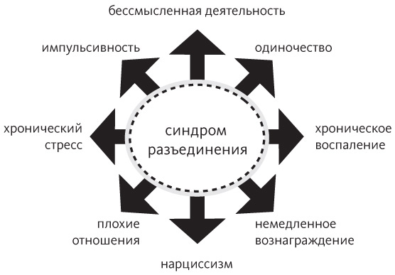 Ваше внимание и решения достаются тому, кто лучше понимает, как манипулировать вашей психологией и биологией ради собственной прибыли. Эти компании знают, как подключиться к мощным нейронным путям, создать почти непреодолимое влечение к кратковременным удовольствиям и коммерциализированной иллюзии стабильной радости. Мы называем это состояние отделения от подлинного счастья синдромом разъединения[9], и настало время воспрепятствовать ему.