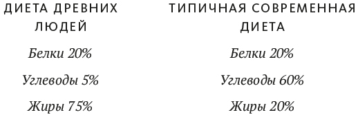Вернемся на мгновение к охотникам-собирателям. Их мозг не слишком отличается от вашего. Оба настроены на поиск продуктов с высоким содержанием жира и сахара. В конце концов, это механизм выживания. Проблема в том, что ваши охотничьи усилия быстро сходят на нет, потому что вы живете в век изобилия и легко найдете обработанные жиры и сахара. Пещерные предшественники тратили немало времени на поиски, прежде чем получали животный жир или натуральный сахар из растений и ягод, да и то только в соответствующий сезон (причем те растения и ягоды были куда менее сладкими, чем представляется, когда вы думаете о плодах). Иначе говоря, хотя мозг работает приблизительно так же, у вас совершенно другие источники питания. Взгляните на схему, отражающую основные различия в рационе доисторических и современных людей.