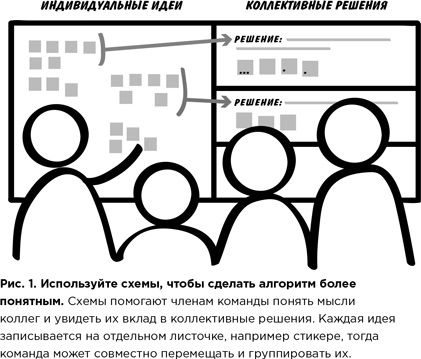 Как использовать алгоритмы, описанные в книге (или создавать собственные)Описанные ниже алгоритмы помогут вашей команде формировать общую точку зрения и совместно принимать решения в серьезных ситуациях. Освоение представленных здесь алгоритмов может занимать около часа, так что сориентируйте коллег в отношении времени. Чем больше команда будет практиковаться, тем меньше времени займут сами действия. Каждый алгоритм мы рекомендуем прорабатывать на доске с использованием маркеров и стикеров. Лучшие результаты мы наблюдали у команд, которые не прибегали к особым технологическим ухищрениям.