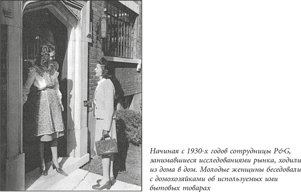 Так как подобная работа доказала свою полезность, P&G пошла на значительное расширение департамента исследований рынка. В 1929 году в департаменте появились первые сотрудницы-женщины, многие из которых перевелись туда из групп, производивших исследования на местах при распространении Crisco и распущенных из-за Великой депрессии. В 1931 году Смелзер решил, что департамент будет уделять большое внимание исследованиям на местах, нанимая выпускниц колледжей и отправляя их расспрашивать домохозяек о различных хозяйственных товарах и привычках. Спустя несколько лет штат департамента вырос до 34 сотрудников, не считая десятков агентов, работавших на местах. В период с 1930 по 1942 год, невзирая на трудности, связанные с депрессией и мобилизацией на фронты Второй мировой войны, бюджет департамента исследований рынка вырос с 45 тысяч до 189 908 долларов{105}.