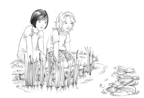 – Утки с лягушками придут в восторг! – воскликнула Джесс. – Насекомые тоже, – добавила она с улыбкой: на лист кувшинки опустилась яркая бирюзовая стрекоза.