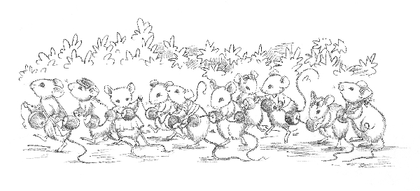 Из лесу выглянула мышка Молли Шустрохвост, а за ней все её девять братьев и сестёр. Они несли Голди ожерелье из фундука. Семейство Суматош подарило имениннице вкуснейшее варенье, сделанное из ягод, росших в их саду. Следом за Суматошами показалось целое облако бабочек, впереди летели Гермия и Флитта. Они несли кружевные зонтики, сотканные из листвы. А ещё – поздравительные открытки от животных, которые не смогли прийти на праздник, потому что жили слишком далеко.