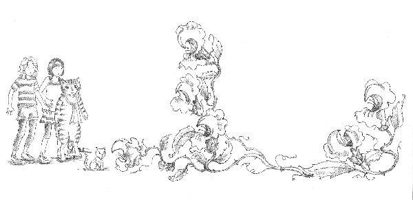 Они обернулись. Голди стояла на задних лапах позади них. На шее у неё был повязан золотистый шарфик. Кошка подошла к девочкам и взяла их за руки.