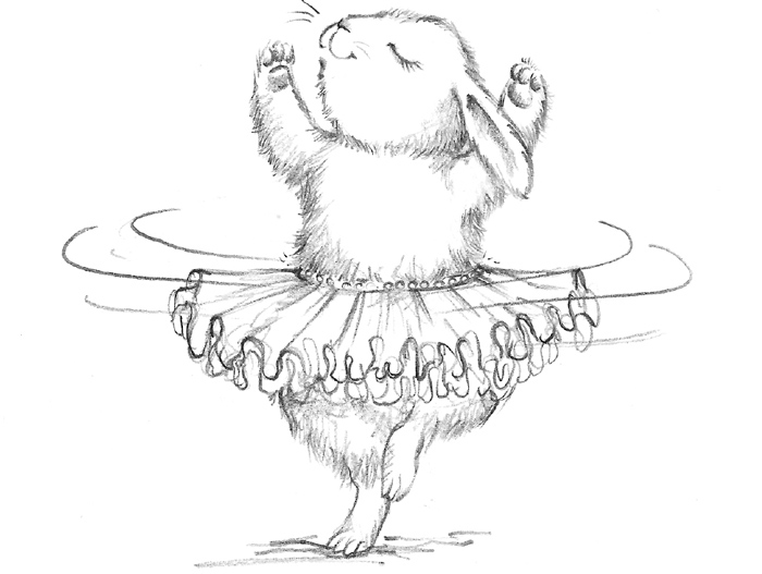В эту минуту на поляну, кружась и танцуя, выплыл изящный крольчонок с шёрсткой цвета мёда и в нежно-розовой балетной пачке.