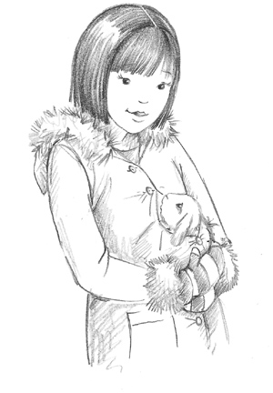 Под елью сидела кошечка с шёрсткой медового цвета. Упавшие на неё снежинки мерцали, словно бриллианты. Завидев Лили и Джесс, она подбежала к ним, приветливо потёрлась о ноги и радостно замурлыкала.