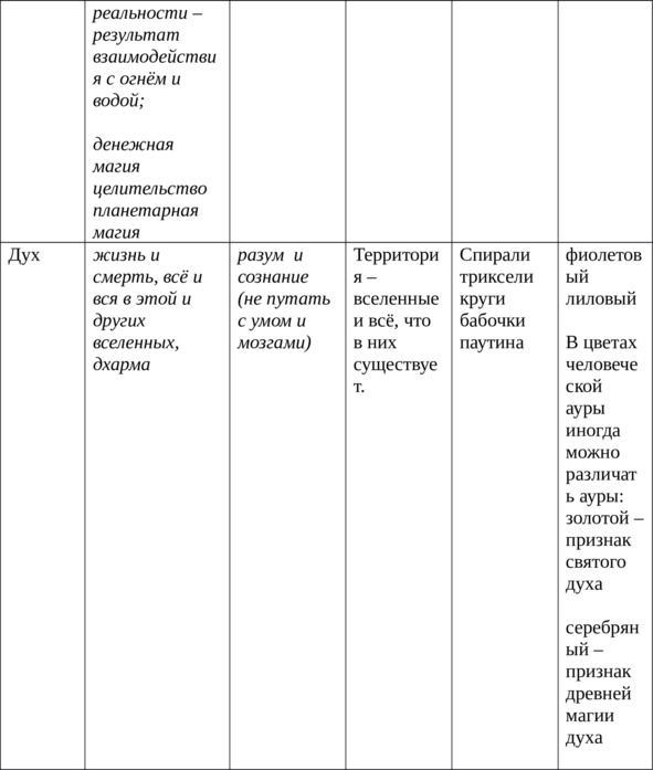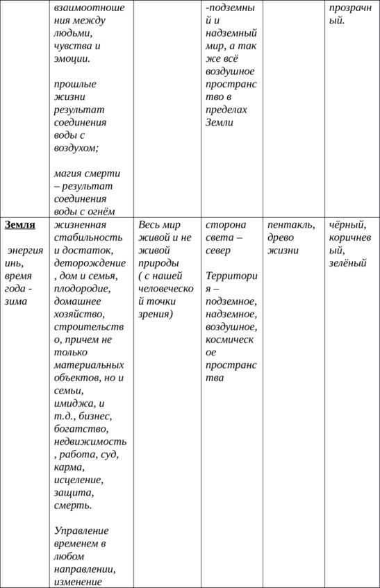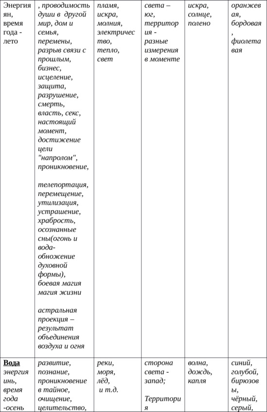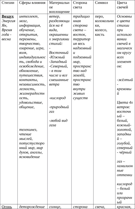 В данной таблице, собственноручно составленной мной, есть всё необходимое для понимания и применения прикладной магии стихий.