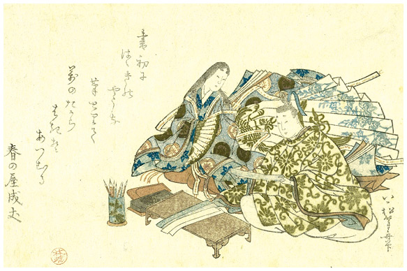 Именно появление собственной слоговой азбуки на основе иероглифики, идеально соответствующей японским фонетике и синтаксису, способствовало расцвету японской литературы: прозы и поэзии. В этот период происходит пересмотр поэтических жанров, и главенствующим из них становится танка – как жанр, наиболее приемлемый в обиходе аристократов. Любая переписка не мыслилась без удачно сложенной танка, будь то любовное послание или письмо к супругу либо престарелым родителям. Танка вобрала в себя множество потаенных смыслов, полунамеков и метафор, которые просто необходимо было знать каждому уважавшему себя аристократу. Многие для этих целей имели личные сборники с набором подходящих случаю или сезону метафор, как и привычку сразу же записывать танка известных поэтов своего времени или попросту удачные стихотворения, услышанные от знакомых. Наряду с танка продолжали существовать и иные поэтические жанры, как и китайские стихотворения канси. Однако в тогдашней Японии мало кто мог похвастать достаточным знанием китайского языка, чтобы свободно слагать стихи на ту или иную актуальную тему. Традиции стихосложения отдельных жанров, как и секреты мастерства, также находились во власти разных родовитых семейств и могли переходить только по мужской линии – от отца к сыну. В принципе, подобная практика наследования традиционного мастерства жива и в нынешней Японии: это характерно, например, для театрального искусства, икебаны, народных ремесел и единоборств. В случае отсутствия наследника мужского пола семья могла передавать мастерство самым избранным ученикам, как это обычно происходило и происходит в Японии и по сей день.