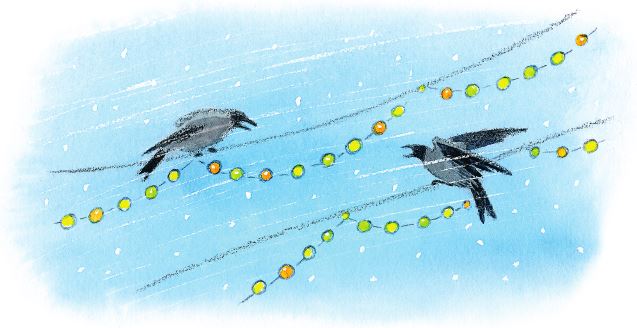 У ее ног сидела большая лохматая собака и слизывала редкие снежинки с мокрого черного носа.