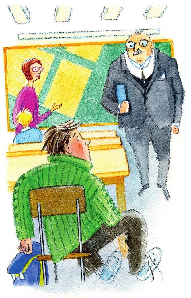 И только она это сказала, как дверь открылась и вошел директор. Все вскочили (и я тоже), он кивнул и махнул рукой – садитесь, мол, и пошел прямо ко мне!