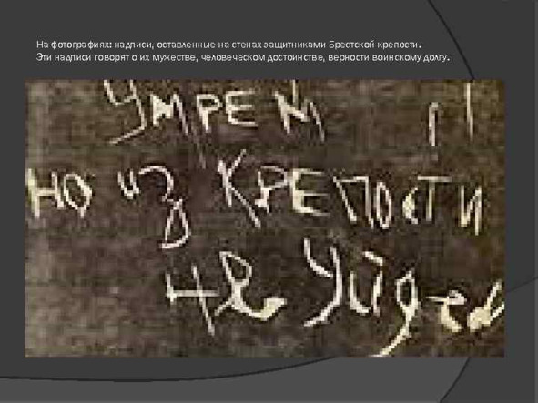 При защите Брестской крепости погибли, некоторые остались живы. Люди были тяжело ранены или контуженные, или были в плену и познакомились с жестокими обращениями во вражеский плен и перенесли все ужасы концлагерей. Некоторым удалось бежать из плена, они сражались в отрядах партизан. С годами люди выжившие вспоминали моменты обороны, как шла борьба, вспоминали раненых и мертвых товарищей.