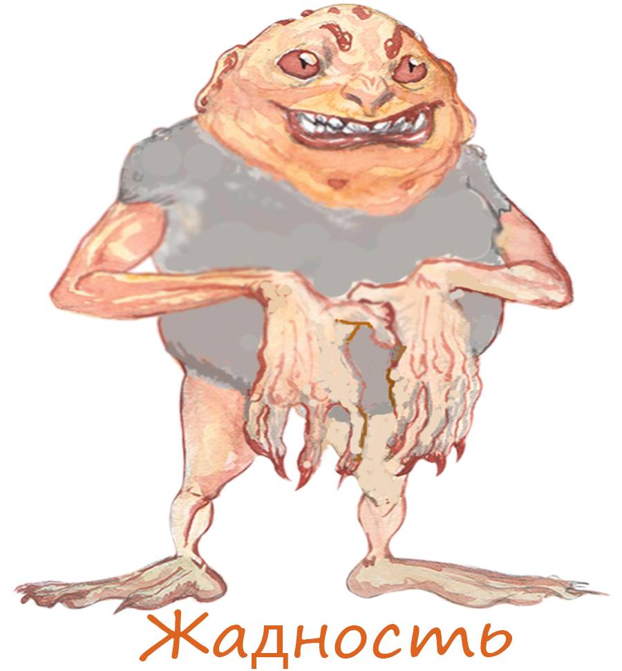 – Ой, какие у Жадности огромные загребущие лапы, и всё тело покрыто бородавками. Бр-р-р! – Вероника с пониманием посмотрела на сестру.