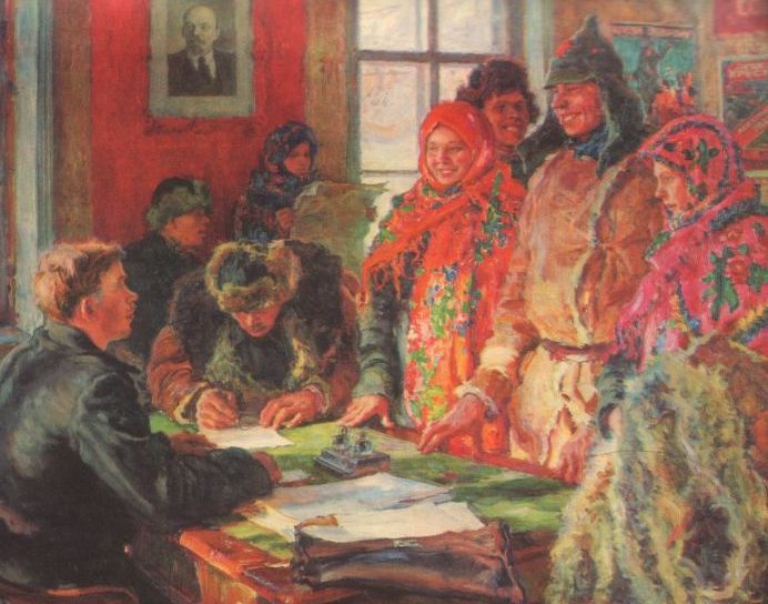 Изображенную на картине сцену автор, скорее всего, не раз наблюдал лично. В картине он передает подлинную жизнь в деревне в период организации Комитетов бедноты, явившихся дальнейшим этапом в развертывании Социалистической революции в деревне.