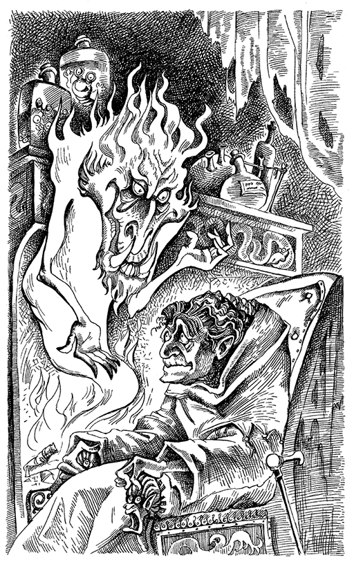 – По рукам! – крикнул демон, и его длинное лицо так и взмыло к трубе. – Я сниму с тебя заклятье в тот самый миг, когда ты расторгнешь договор!