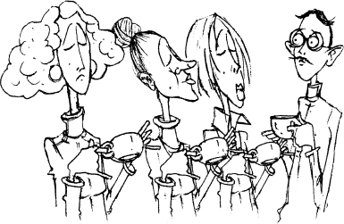 “Er, hn hm,” brayed Chair Person twice as loudly as the Vicar. “I am – hn snuffle – Chair Person. How kind of you all to come and – hn hm – meet me. These good people” – he nodded and waved arms at Dad and Mum – “have been honoured to put up with me, but they are only small stupid people who do not matter.”
