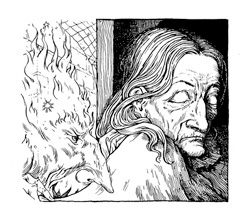 In the middle of the night Sophie was woken by someone snoring. She jumped upright, rather irritated to discover that she was the one who had been snoring. It seemed to her that she had only dropped off for a second or so, but Michael seemed to have vanished in those seconds, taking the light with him. No doubt a wizard’s apprentice learned to do that kind of thing in his first week. And he had left the fire very low. It was giving out irritating hissings and poppings. A cold draft blew on Sophie’s back. Sophie recalled that she was in a wizard’s castle, and also, with unpleasant distinctness, that there was a human skull on a workbench somewhere behind her.