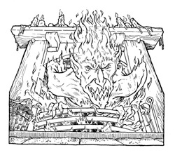 This time Sophie prudently took her stick and her shawl, since it was now quite dark. Michael was turning the doorknob blue-down when two strange things happened. On the bench the teeth of the skull started clattering. And Calcifer blazed right up the chimney. “I don’t want you to go!” he said.